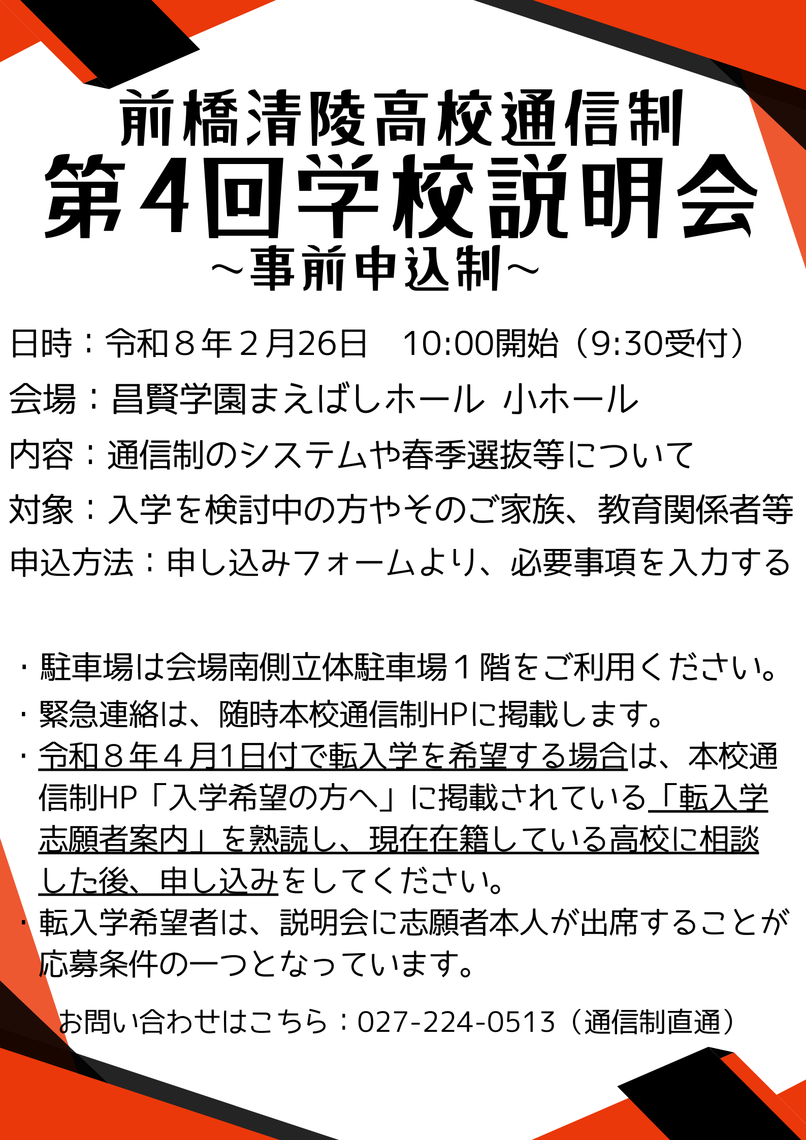 2025.05.27 第1回前橋清陵高校通信制学校説明会は定員に達したため受付を終了しました。(6.14掲載)
